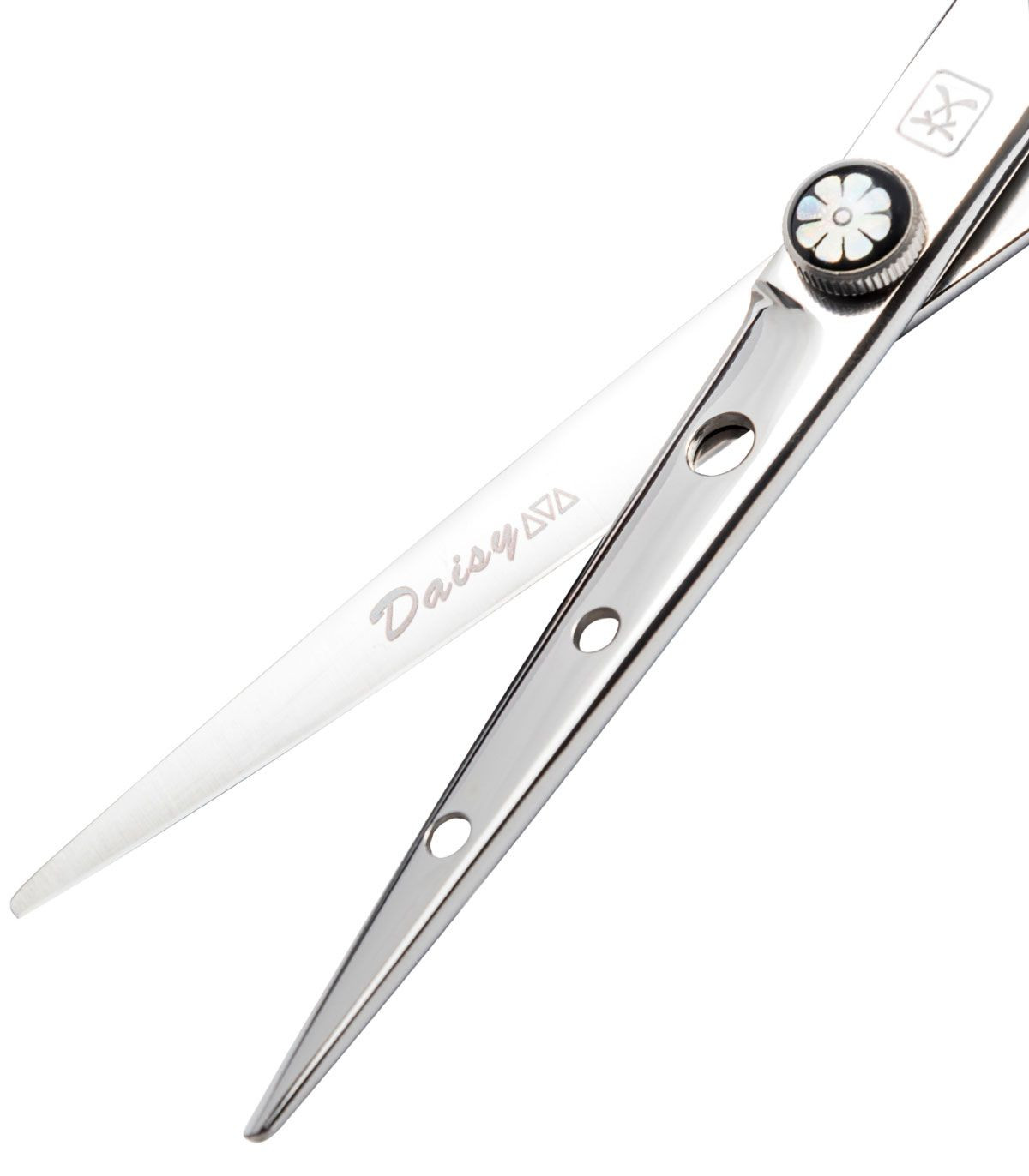 Парикмахерские ножницы для стрижки волос Katachi Daisy изготовлены из высокоуглеродистой нержавеющей стали марки 440С. Имеют высокий уровень полировки полотен, что позволяет использовать их для всех техник стрижек, в том числе и для слайсинга.