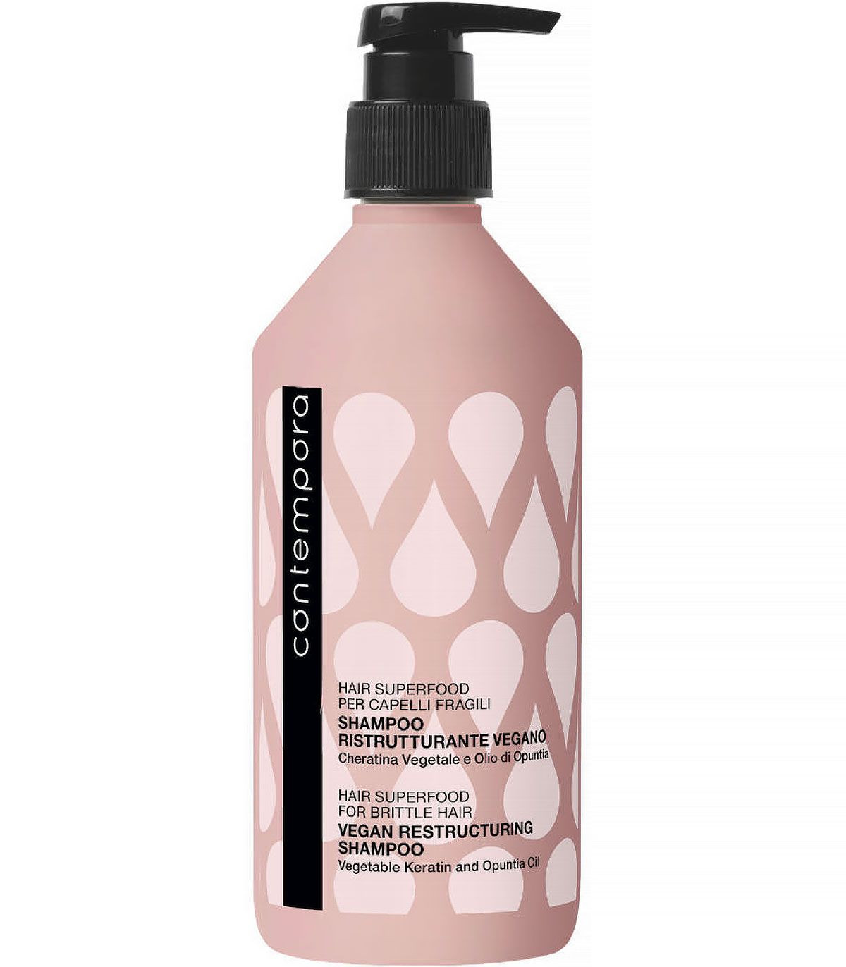 Шампунь для відновлення ламкого та тьмяного волосся Contempora збільшує кількість кератину в структурі волосся, захищаючи його від подальших пошкоджень. Має зволожуючу та регенеруючу дію.