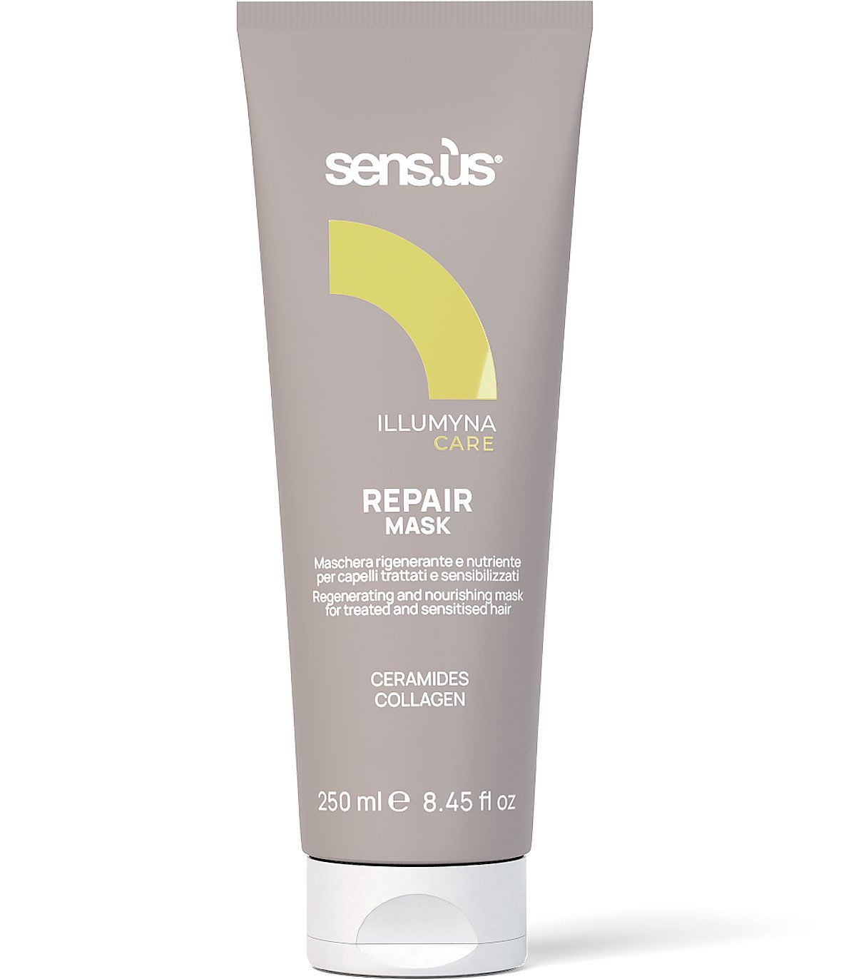 Відновлююча маска для пошкодженого волосся Sensus Illumyna Repair Mask — професійний засіб для догляду за ослабленим та зневодненим волоссям, яке зазнало частих хімічних та термічних впливів.