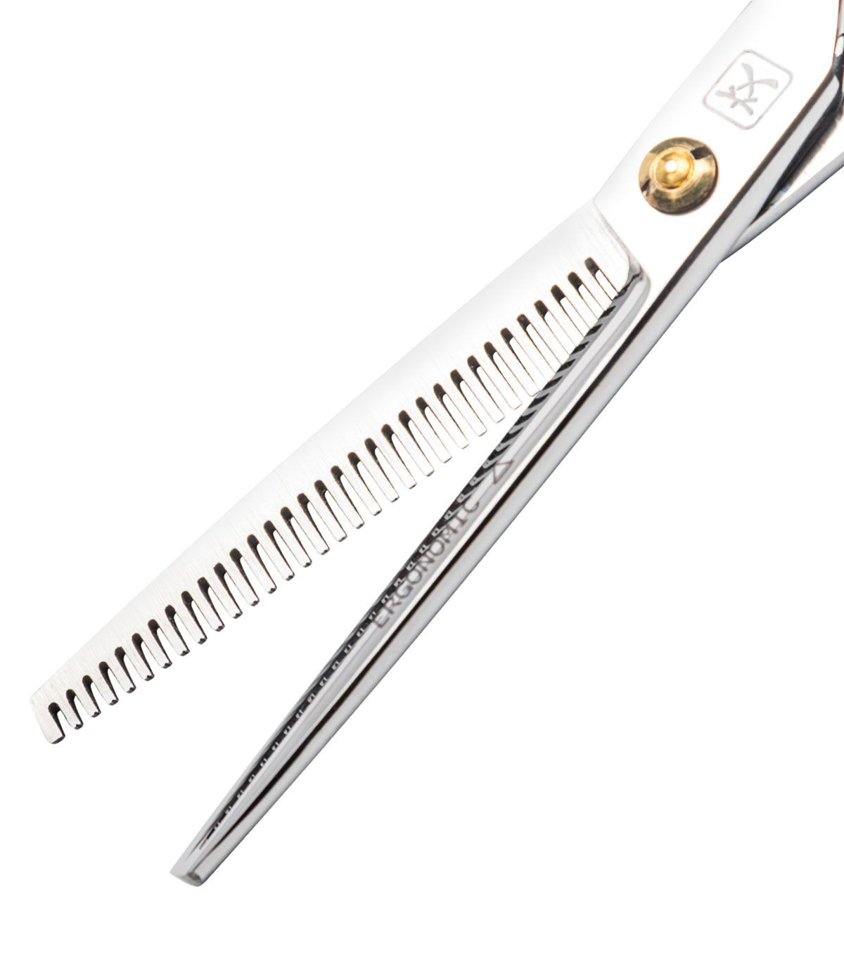 Перукарські філіровочні ножиці Katachi серії Ergonomic мають особливу форму зубчиків, які утворюють овальну порожнину між ними, для полегшення виходу ножиць з волосся. Завдяки такій будові зубців, стрижка проходить без стресу для волосся.