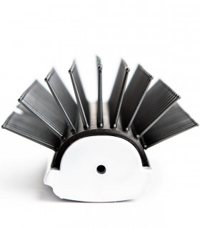 Її щетинки виготовлені з високоякісного нейлону і виконані таким чином, щоб не травмувати шкіру голови і саме волосся в процесі сушіння. До того ж, вони мають антистатичну дію, тому такий гребінець не тільки не буде електризувати волосся, але і буде видаляти з них статику. Зубці досить гнучкі і стійкі до високих температур. За рахунок своєї рухливості вони легко піднімають волосся в прикореневій зоні, допомагаючи створити неймовірний об'єм.